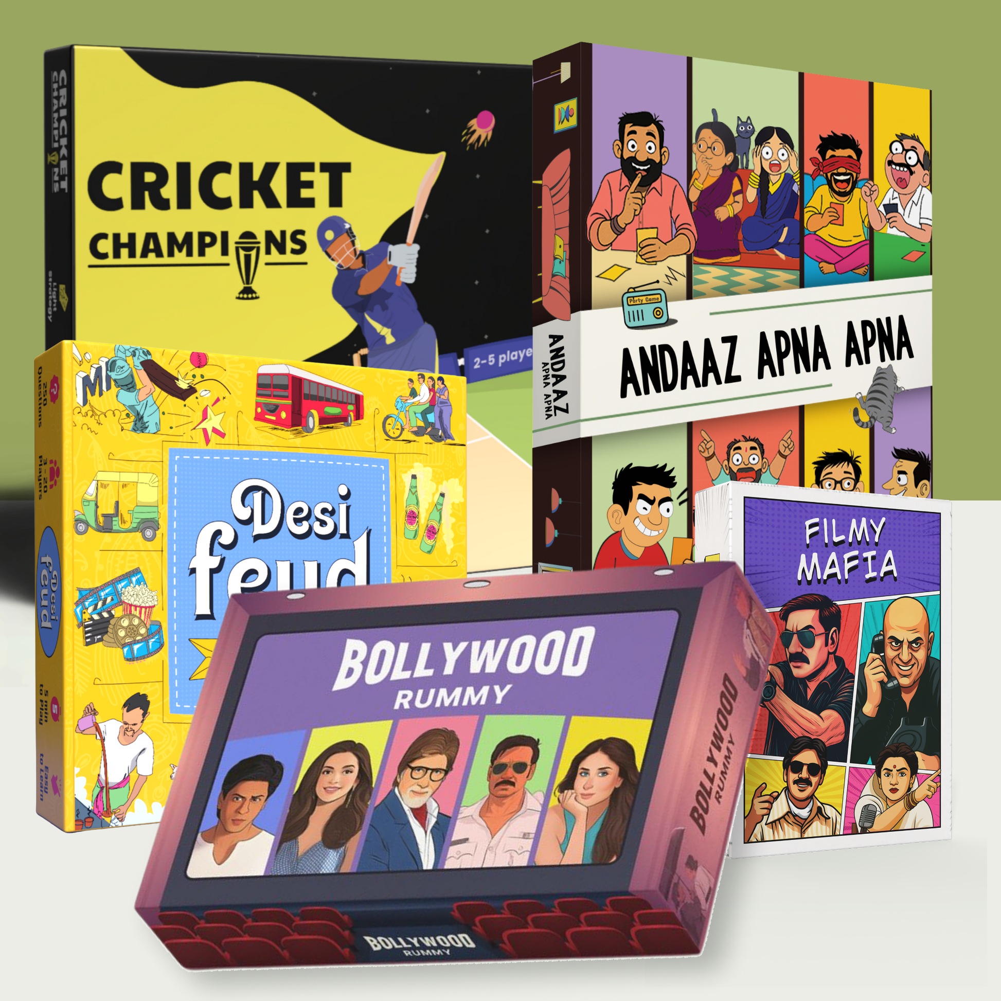 This all-in-one pack brings together all 6 of our bestselling Desi Board Games — from filmi madness to laugh-out-loud guessing, family drama to strategy showdowns.